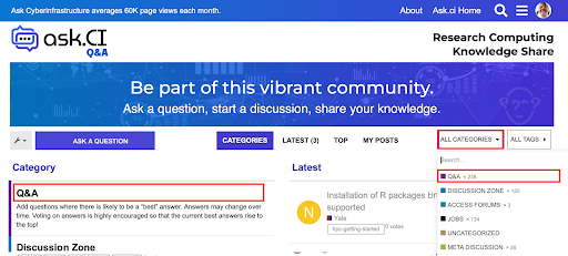 First, go to the Q&A category. You can get there with the Categories button on the homepage or the site’s menu: